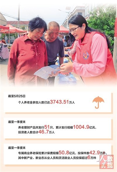 去年11月,我国正式启动个人养老金制度,在36个先行城市或地区试点。作为我国养老保险体系“第三支柱”的重要组成部分,个人养老金开户规模稳步增长,运行平稳有序。数据显示,截至5月25日,个人养老金参加人数已达3743.51万人。